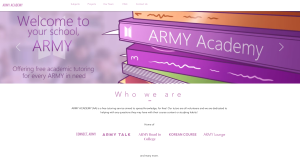 L’entraide étant une valeur et une force de la communauté ARMY, on note aussi un certain nombre d’initiatives de tutorat par des fans, pour des fans. À cet effet, on peut notamment pensé au projet ARMY Academy, fondé en 2018, qui propose des services de tutorat sur divers sujets par des membres ARMY aux études universitaires.