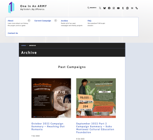 ARMY est une communauté engagée qui a réalisé plusieurs centaines de projets depuis le début de leur activité. Les projets varient dans la forme (sensibilisation, levée de fonds, organisation d’évènement, protestations et manifestations politiques, etc.) et dans la cause (contre les DeepFake, en support de #BlackLivesMatter, en support de multiples OBNL à travers le monde, etc.). Ils font cependant preuve d’une certaine cohérence axiologique: ils s’inscrivent dans les mouvements que l’on peut appeler progressistes ou humanistes, mettant de l’avant des valeurs comme la justice sociale, la lutte aux inégalités et aux violences, l’amour et le respect de soi et des autres. Les projets sont librement et largement inspirés de l’engagement et du «message» de BTS. On peut ici prendre comme exemple l’organisme One in an ARMY, qui a coordonné des levées de fonds de 2018 à aujourd’hui pour divers OBNL de partout dans le monde.